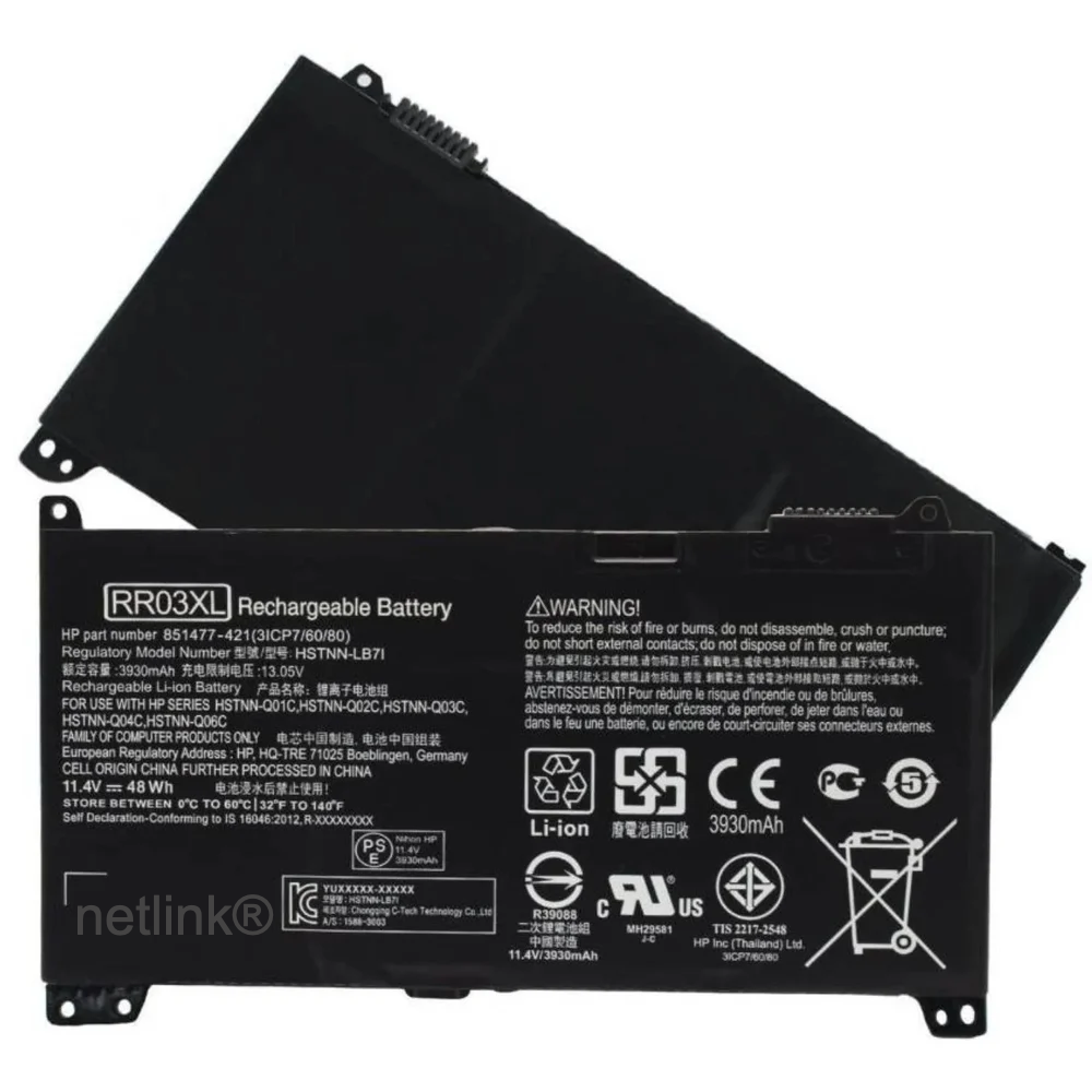 Replacement RR03XL Laptop Battery for Hp ProBook 430 440 450 455 470 G4 G5 Zhan66 Pro G1 series